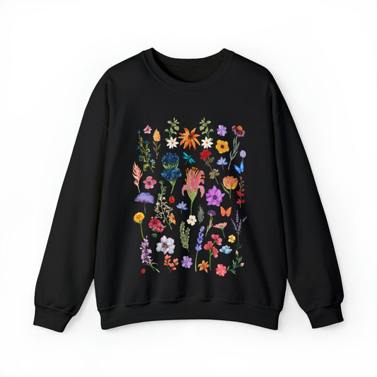 Botanical Flower Unisex Crewneck Sweatshirt, gardening sweatshirt, plant lover, nature lover, ladybug, butterfly, sunflower, lavender, daisy girl, women, teen